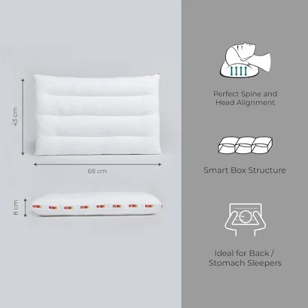 Spaces 110 GSM Slim Pillow for Sleeping | Ideal for Head and Spine | White Pillow | Size: 26 x 16 Inched